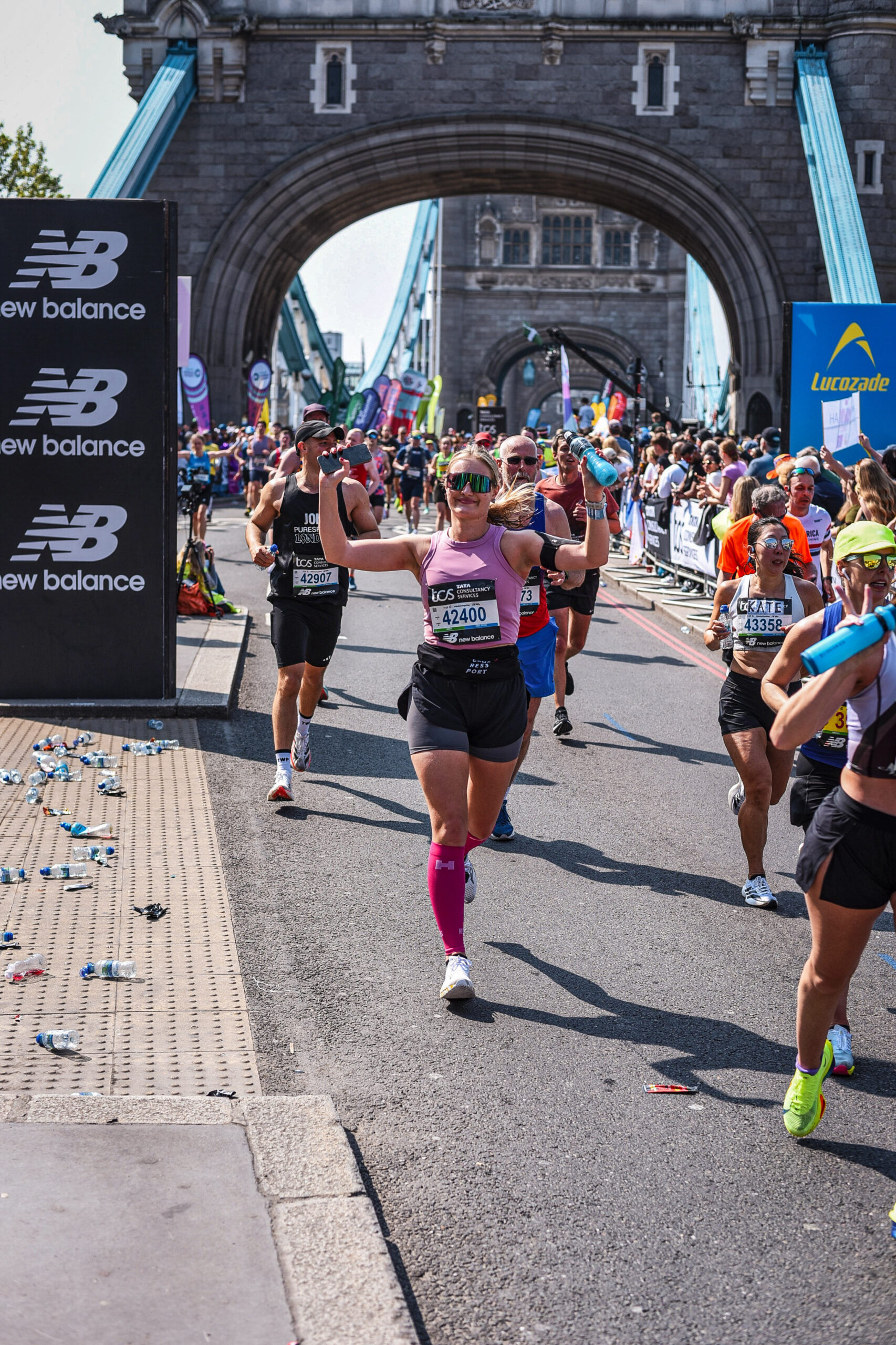 Het motto was “finish lines not finish times!” en ondanks dat de race zwaar was, was het wel prachtig en gaaf om zo door London te lopen! Met het hoogtepunt vlak vóór het halve-marathon punt; de Tower Bridge! Op dit moment had ik mijn telefoon ook gepakt om dit moment vast te leggen, iets wat ik ook normaal gesproken niet zo snel zou doen tijdens een race ;). Ook vroeg ik me af hoe het bij mijn vader zou gaan; had hij het net zo zwaar als ik? Of ging hij als een speer? Ik hoopte natuurlijk op het laatste!